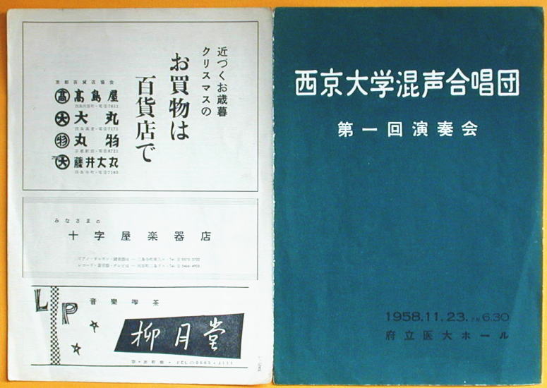 ◆宣伝は府大近辺の靴屋、喫茶店などで半数。後の半数は大阪の業者による「アカイステレオ」の宣伝や伏見清酒「名誉冠」など。それと写真にある京都の四つの百貨店合同の宣伝、十字屋楽器店に出町柳の柳月堂。合計10枠の宣伝。頑張ってよく宣伝を集めております。