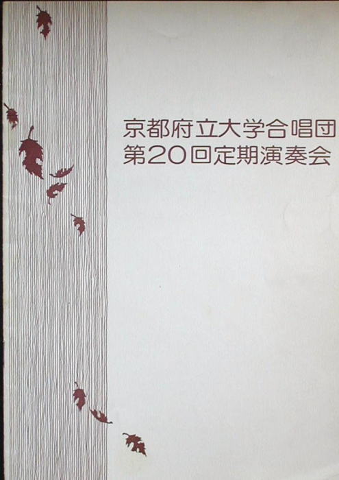 ◆1977年第20回定演プログラム。表紙は写真の通りで、従来のパターンに戻っています。すなわちB5サイズで表紙も含めて印刷屋に活字で印刷してもらうというものです。しかしその内容は20回定演を記念するだけのものがあり画期的です。指揮者・幹事長のプロフィールでは初めて各自の顔写真を付け、パート紹介にもパートの全体写真を付けました。これらの写真使用は定演プログラム史上初のものです。それ故に、今回は三枚の写真とも20回定演プログラムのものです。
