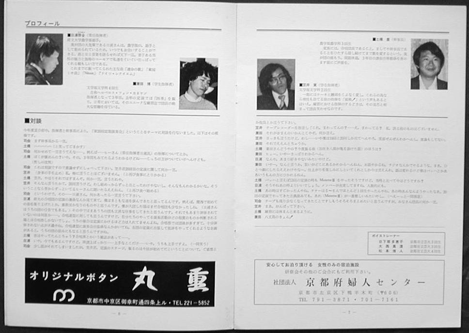 ◆20回定演プログラムの、指揮者と幹事長のプロフィールのページ。写真は左から日浦常任指揮者、兼田学生指揮者、笠井学生指揮者、土橋幹事長。写真の下に載せられている「対談」より抜粋します。まあ、それぞれの個性がよく出た対談です。