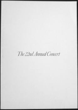 ◆1979年第22回定演プログラムの表紙写真です。大変シンプルなものとなってます。プログラム本体は一枚の厚紙に印刷してそれを三つにたたんだもので、曲目と曲の解説、それに団の挨拶を載せたのみです。別冊としてガリ版刷りの12ページからなる団役員・団員紹介・指揮者やソリスト紹介の冊子が付いています。 ◆別冊の団員紹介は切り貼りした顔写真付きで、文章でその人を紹介います。その中でいくつか紹介します。高尾幹事長は「女気を全く感じさせないまじめ〜な人であるが、理想は容姿端麗、頭脳明晰、明朗快活云々…とかなり高い。空気のような存在だけど、彼の控えめな中に秘めたしたたかさ、小気味よさは素敵で、見逃せません」。指揮者の毛原氏は「からだ全体で表現してくださる彼の指揮には、あったかい父親のイメージがピッタリです」。ある2回生の女性団員には「やめようネ 火遊び夜遊び 男遊び」!? ◆1ステがロシア民謡、「ざわめけアムール」「バイカル湖のほとり」「アムール河の波」「ロシア」以上4曲で毛原和男氏の指揮、ソリスト島宗宏氏。2ステがブルックナーのモテト4曲で、玉置洋一郎氏の指揮でソリストが若松正之氏。3ステがポピュラー、映画「キタキツネ物語」より6曲。4ステがブラームスのドイツレクイエムより4つの楽章、日浦氏指揮で。