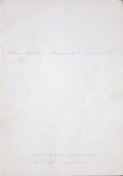 ◆1993年第36回定演プログラムの写真であるが、色調をかなりおさえた表紙となった。白地に紫色で細い文字を印字しているので写真では文字が読み取りにくいと思いますが原本もそうなんです。 ◆全部で4ステで、1ステが皿井良知氏指揮でモーツァルトのミサハ長調K.167、ピアノ伴奏付。 2ステは虎山一郎氏指揮、木下牧子作曲、北原白秋作詩の「邪宗門秘曲」。このなんとも気がかりな題名は白秋の処女詩集「邪宗門」の中の代表作とのこと。 3ステはPOPで「L’amour 想い」…In